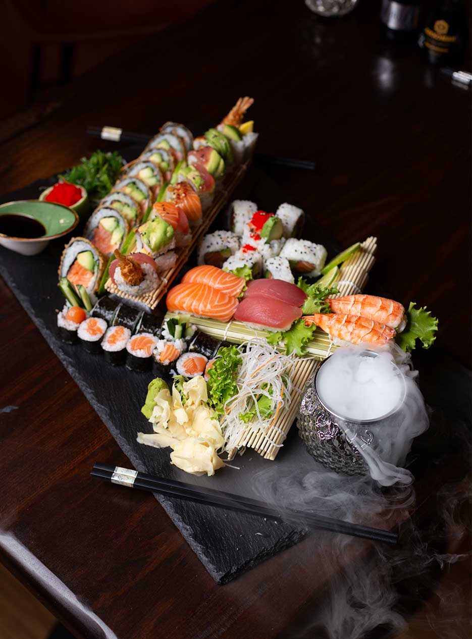 Unsere Sushi-Auswahl reicht von klassischen Nigiri und Maki über frisches Sashimi bis hin zu unseren speziellen Inside-Out Rolls und hausgemachten Rolls. Wir legen großen Wert darauf, frische, handverlesene Zutaten zu verwenden und diese gekonnt in kleine Kunstwerke zu verwandeln.